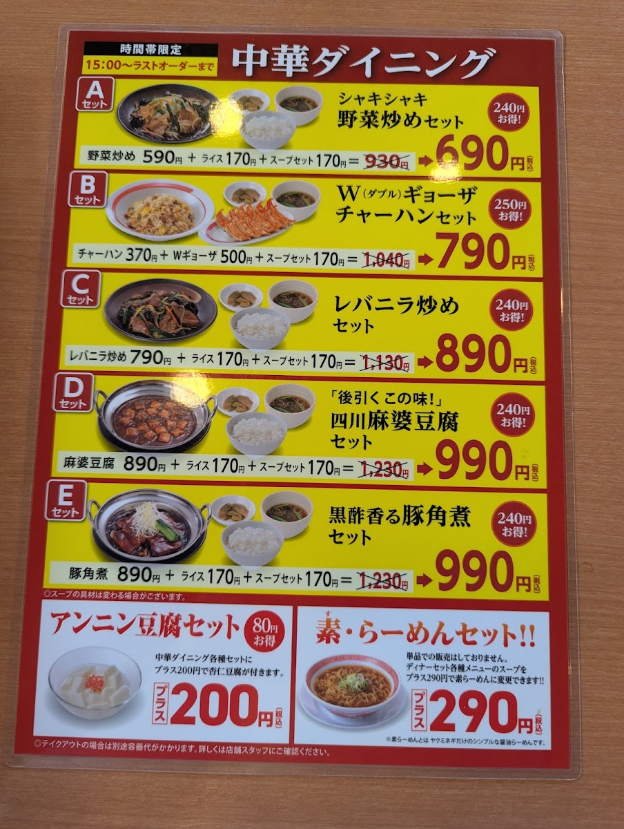 For those seeking a complete meal, Kourakuen Mito offers several set meal options. The Single Set A (シングル定食Aセット), Single Set B (シングル定食Bセット), and Single Set C (シングル定食Cセット) provide satisfying combinations of rice, protein, and side dishes, each catering to different appetites and tastes. These sets are not only filling but also offer a balanced selection of flavors to complement the main dishes.